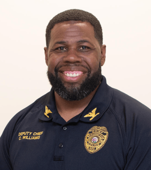 Chief Chris Williams’ mother, who was a nurse, and his father met while guarding a prisoner at the hospital she was working at. Growing up, the Jackson, Mississippi, native played basketball and football. He was also part of the JROTC Program and was a member of the Honor Society.